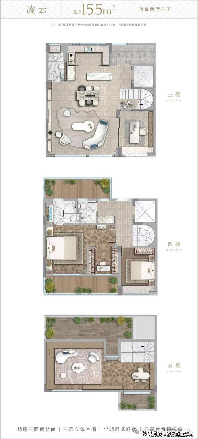 创新“三阳台分区功能”:景观阳台、生活阳台、次卧阳台各司其职,解决“晾晒占用休闲空间”的生活痛点;
