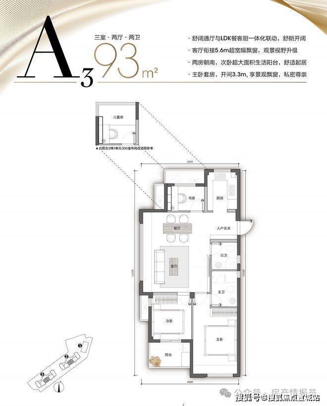 该户型定位90后三口之家,整个空间以简洁静谧作为主基调。