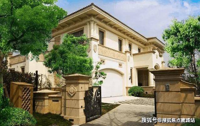 航拍俯瞰,浓荫绿树,这可不是普通别墅区可比拟的,每一棵树没个几十年可长不到这尺度啊。关键是,合生东郊别墅可是在上海,内环旁哦!外立面,澳洲砂岩配以砂岩浮雕。私家大花园,近三个篮球场大小,室内电梯都是标配。