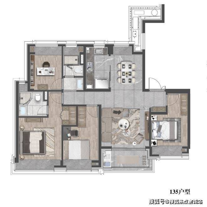建面约135㎡4房2厅2卫户型图:✅✅中环云悦府售楼处电话:400-8851-337✅✅