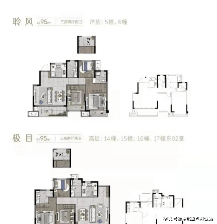 95㎡/97㎡三居:总价155万-165万,全明格局,多飘窗设计