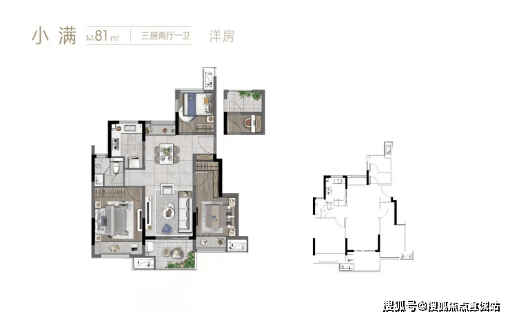 81㎡三居:总价123万-130万起,三开间朝南,南北双阳台设计