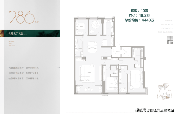 286㎡,4房3卫,单价18.2万