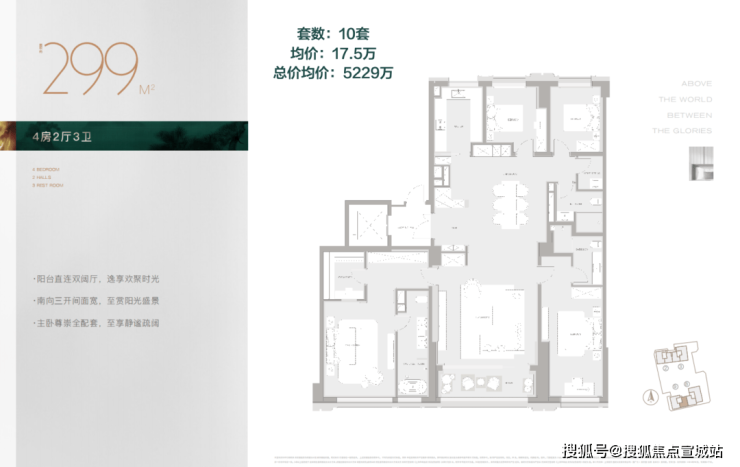 299㎡,4房3卫,单价17.5万
