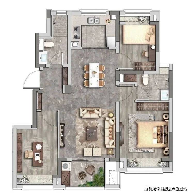 同时,套房式主卧、入户玄关设计,保证主人私密性的同时兼具改善功能。