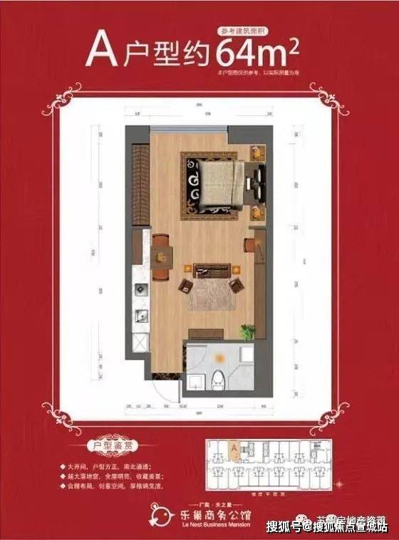 区域地标建筑,传承法国百年建筑精粹,全石材干挂,老虎窗,玻璃穹顶,法式风格,体验优雅,感受时尚。50平灵动空间,突破户型禁锢,开创空间新革命,享自在生活。