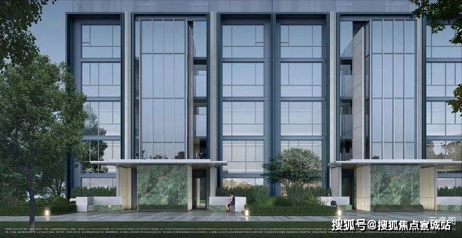 建筑风格:高层采用极简线条 + 天青色铝板 + LOW-E 玻璃幕墙;叠墅为三段式设计 + 釉面陶板。