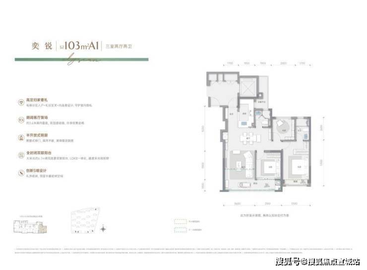 建面约103㎡边套三房两卫:以“小户型大空间”的设计哲学,革新了未科改善的居住想象。户型方正,南北通透,入户独立玄关让归家充满仪式感,且几乎零浪费空间。设计上的一大亮点是全屋“应飘尽飘”的飘窗系统,大幅提升采光与景观视野,据估算全屋飘窗面积约8.5㎡,极大地提升了实际使用率。