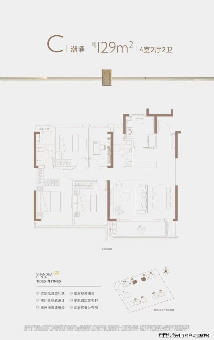 第二,项目本次推出的建面约129㎡4房, 是区域目前在售的4房户型。