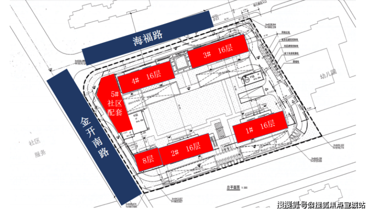 目前设计方案已发布,计容面积约2.72万方,普通商品房用地占地面积约1.36万方,容积率2.0,限高50米, 住宅套数下限288套, 套均面积约94.4㎡,主要由4 栋16层住宅和 1栋社区配套组成。