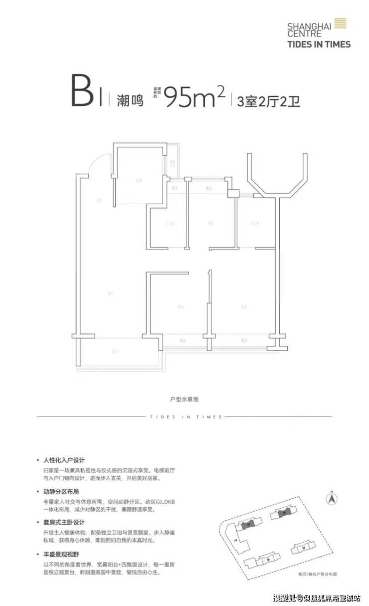 在格局上,户型三开间朝南+动静分离,室内通风、私密性俱佳。