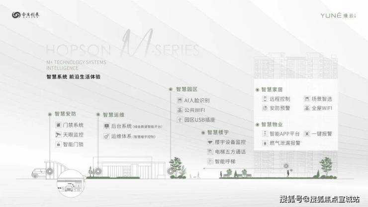 M+科技体系:首创M+科技体系,以智慧、健康、精工、生态四大体系,赋予空间美好的体验与品质,每一寸细节皆为生活悉心定制。
