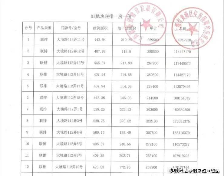 【一房一价表】