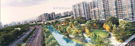 特别是17米的社区景观,做到“一廊两境三轴九景”的大尺度规划。
