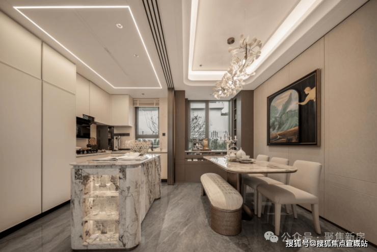 【海上·清和玺】希望业主的每一次归家,都能有属于自己的社交空间。整个前厅的接待空间不是一个过渡空间,而是一个真正为归家营造惬意分享的生活场。