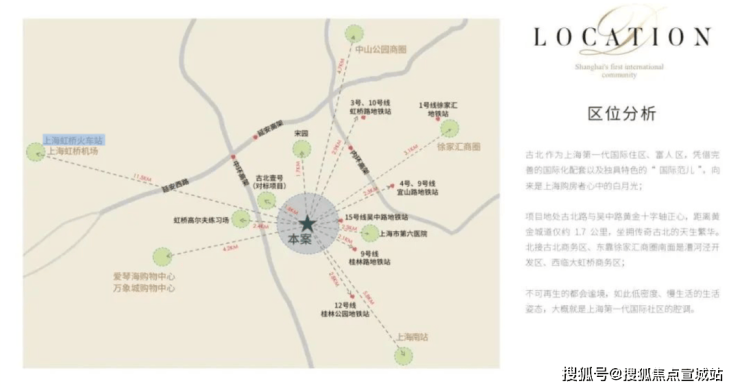 距离虹桥交通枢纽6.5公里左右,出差便利。产业、交通、配套齐聚,且周边就是古北壹号、古北臻园,圈层纯粹!