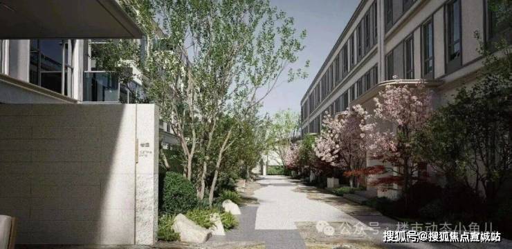 进入社区,迎面而来的依次是酒店式归家入口、礼仪门堂、水韵澜亭、四季会客厅、景观会客庭院等五重递进式东方礼序归家动线.