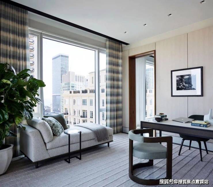 在宽敞的落地窗边安放休闲餐桌椅,俯瞰整个城市美丽景色的同时也让心情得到洗涤.