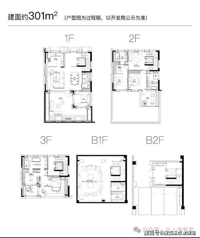 户型信息:在售户型面积为220-480㎡,涵盖独栋别墅与联排别墅。联排别墅主力户型为220-260㎡的三室两厅四卫,独栋别墅户型面积为350-480㎡,为四室三厅五卫至五室四厅六卫户型。所有户型均采用精装修交付,装修标准8000元/㎡。