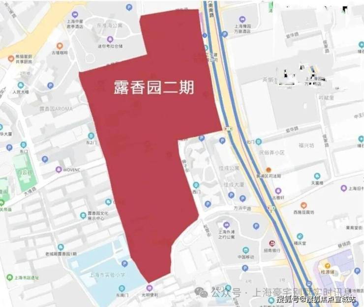 露香园二期地块,位于黄浦区老城厢核心地段,北至高墩街-福佑路,南至方浜中路-昼锦路,东至河南南路-狮子街,西至露香园路,与露香园一期紧密接壤。 东临豫园和外滩,地理位置优越,临近10号线豫园站。