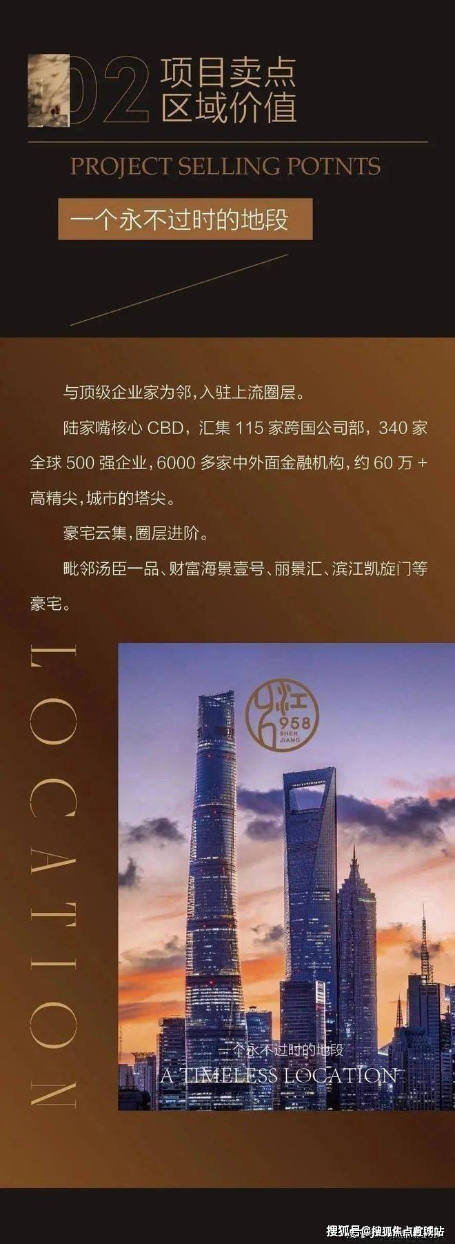 申江958售楼处电话:400-8828-814是近5年来陆家嘴板块蕞核芯位置的公寓杰作,公寓坐落地浦东新区陆家嘴环路上,定位为限量版高端豪装公寓,公寓毗邻汤臣一品、财富海景壹号、丽景汇、滨江凯旋门等豪宅,是近5年来小陆家嘴板块首次面市的不限购公寓,地段的优越性决定了它的不可复制性。