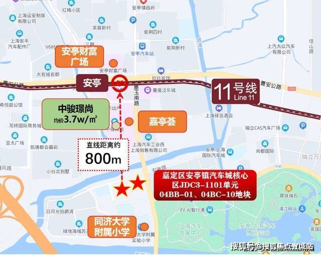 「上海国际汽车城项目」位于嘉定区安亭板块,距离11号线安亭站直线约800米。