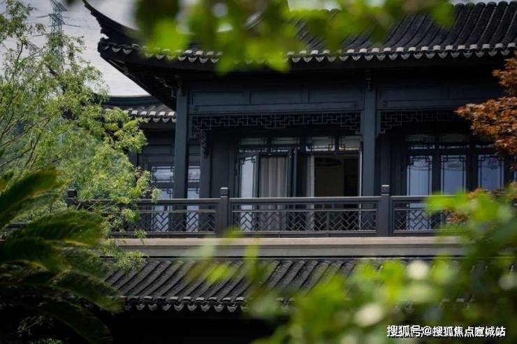 建筑美学:粉墙黛瓦、宋式飞檐,局部香槟色铝板与玻璃幕墙融合,复刻江南民居精髓。