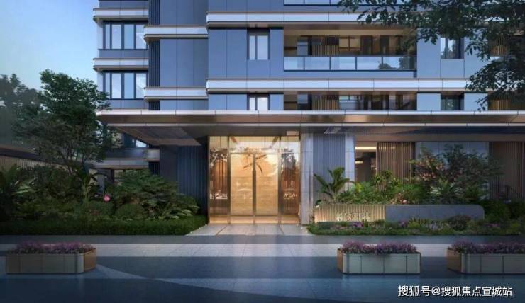 桃源里不仅远眺颜值出众,每一处细节都体现了精致感与仪式感,一个800w级的新盘,竟然还为入户单元设计了昭示性景墙+专属入户铺装,而不是简单地把楼栋号安装在门洞之上