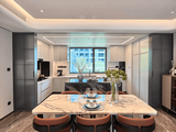 上海浦东绿宝园翡梵售楼处电话☎:400-8123-224(售楼处预约看房热线)利用背景墙和吊顶的错落设计,构建出了家的基本样子。几何元素的运用,让家居空间充满了活力和张力。