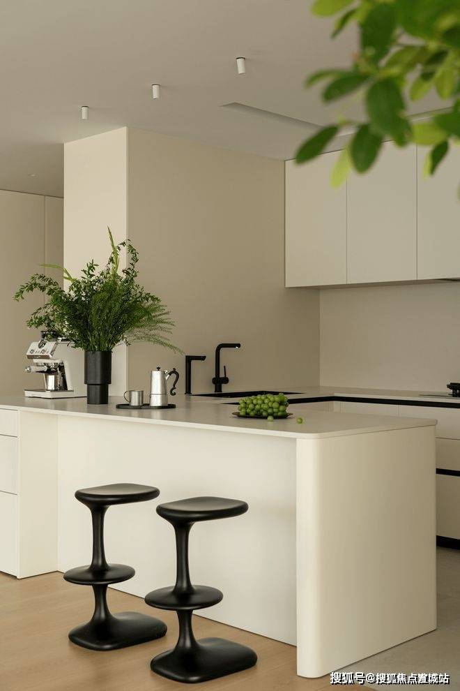 作为入户第一幕,玄关以极简姿态开启生活叙事,素净墙面如天然画布。清透支架托举着素白花瓶,植物姿态俏皮延展,成为连接户外与生活的温柔过渡。