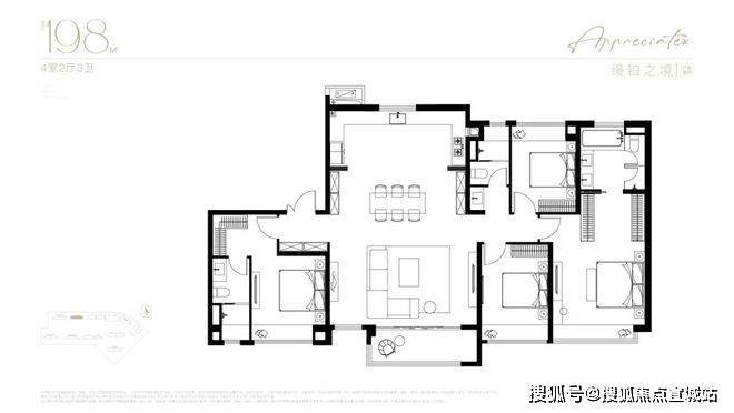 当传统百平户型还在为三开间挣扎,南山璞缦建面约198㎡以约19米四开间朝南面宽+LDKB一体化纵深实现降维打击.主卧折角飘窗延展空中墅级视野,HWCD团队更将海派摩登融入奢装细节,让室内每一寸空间成为艺术展场.