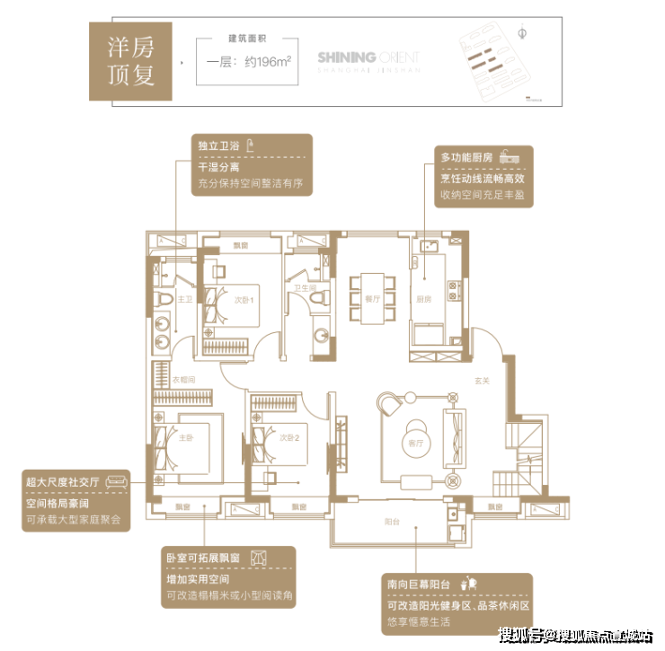 洋房顶复:建面约196㎡