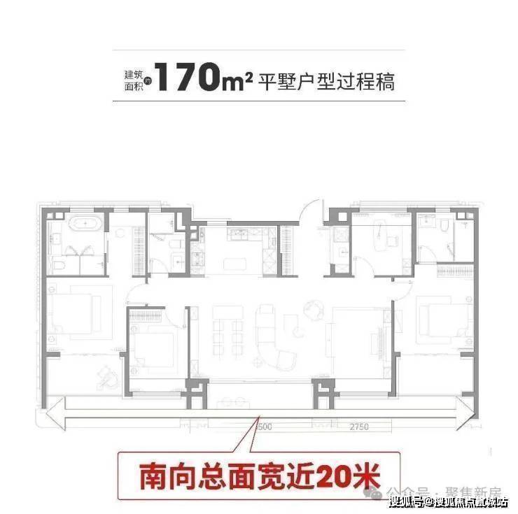 建面约170㎡户型:直接放大招,五面宽,南向总面宽17.2米,客厅面宽8.2米,主卧面宽5.4米,自带衣帽间、独立收纳空间。三个套房设计,把豪宅该有的尊崇感安排得明明白白。
