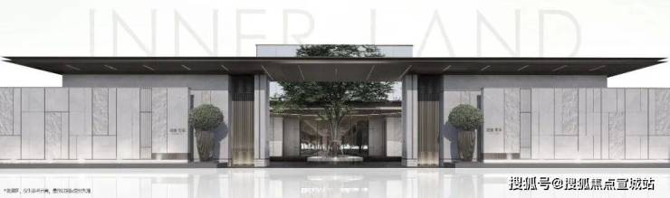 约40米恢弘尺度大门,奢选石材搭配鎏金铝板