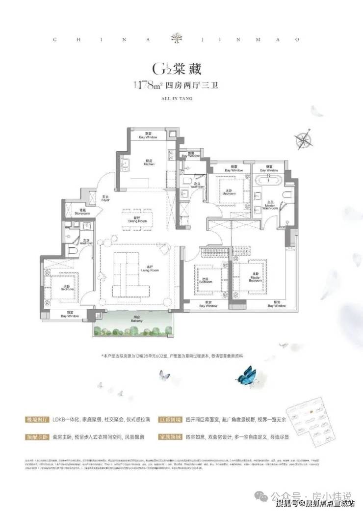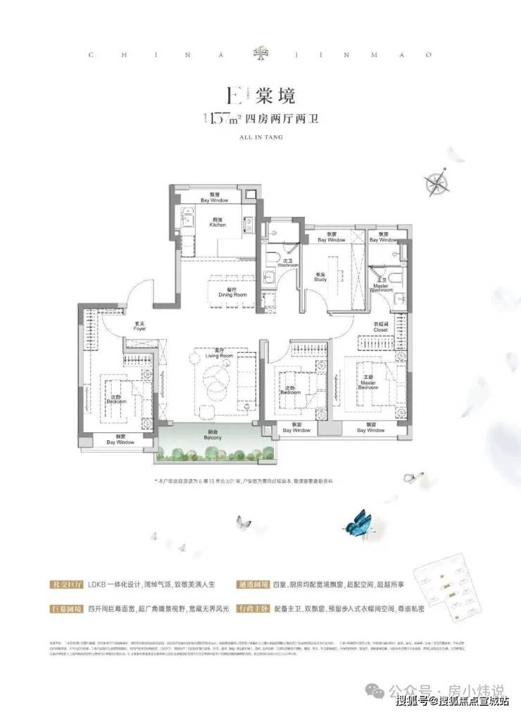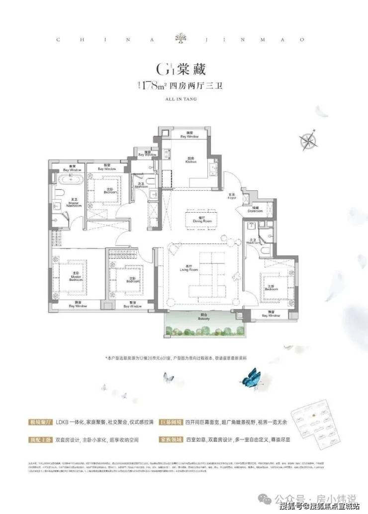 全景舱艺境美宅,标准层约3.1米层高、270度全景飘窗、LDKB一体化、南向跑道阳台、超12米南向全屏开间,无限视野尽收眼底,还有超金喜的满配精装,全上海只有央企金茂才能做得到。