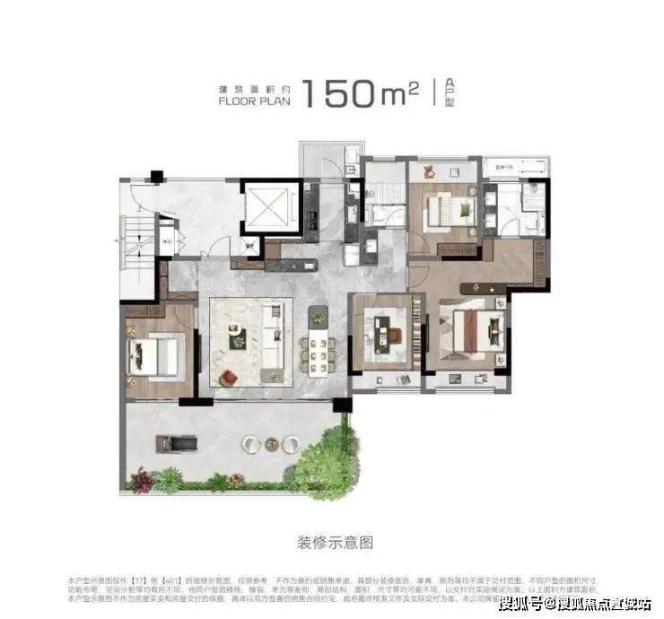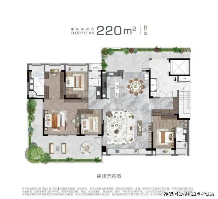 作为苏州主城首个纯四代住宅,蠡棠森屿的空中庭院设计彻底改变了传统居住模式。以185㎡户型为例: