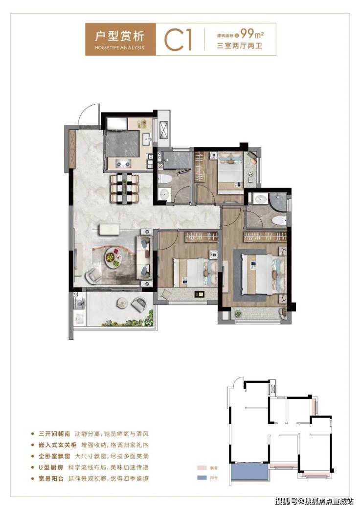 瞰景高层 / 73㎡二房一卫,85㎡、99㎡三房二卫