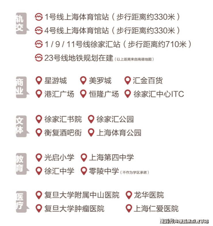 商业配套完善:300 米范围内有飞洲国际、星游城,1 公里范围内有港汇恒隆广场、美罗城、徐家汇中心 ITC、汇金百货等知名商厦。