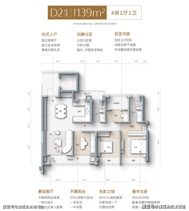 如果家里人没那么多,约139㎡的4房2厅2卫,更有性价比。