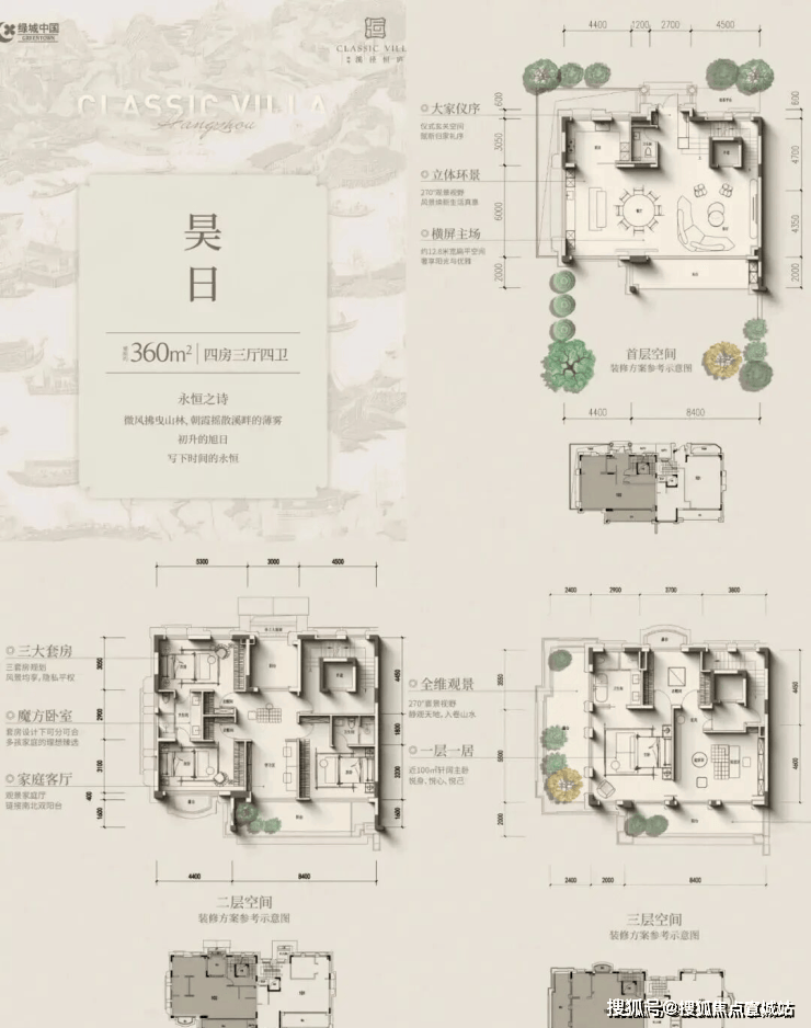 叠排产品遵循“现代形、东方意”内涵,低密产品,最主要追求的就是“有天有地,有私密感”,所以附加值的打造,变得尤其重要。所以,我们先讲的是附加值。建筑面积约235~300㎡四层庐系叠墅,
