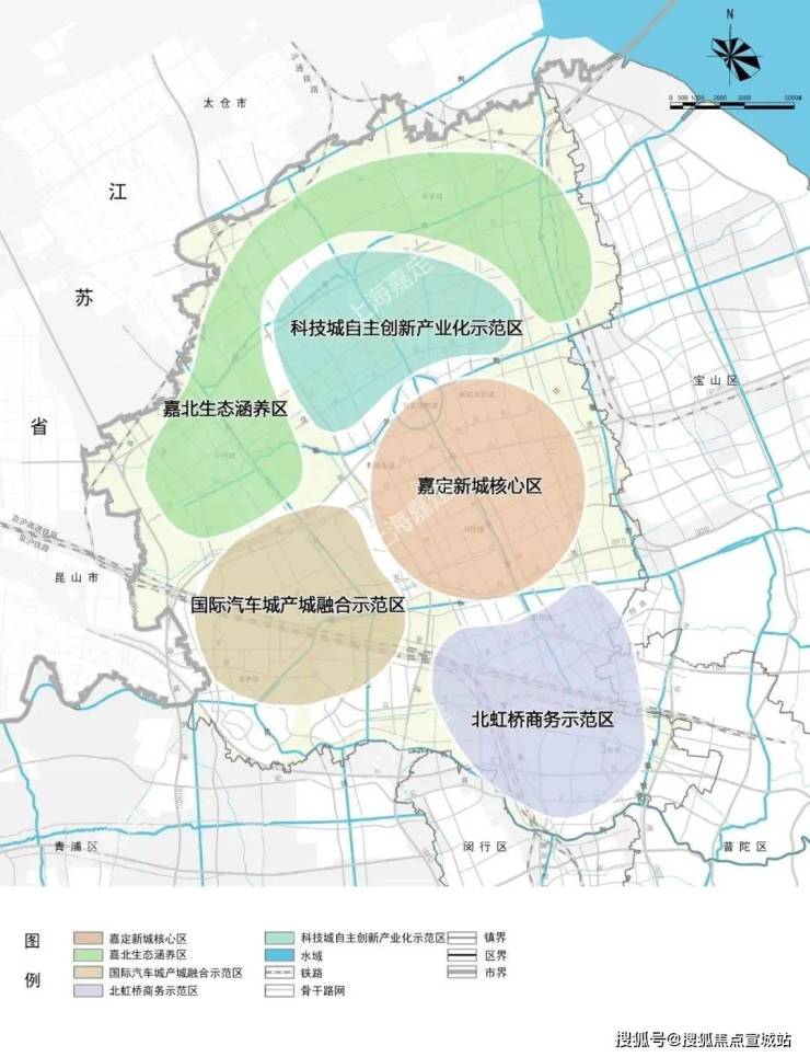 嘉定区2035规划形成“一核四区”功能布局:嘉定主城核心功能区(包括新城及、老城主要区域、嘉定工业区南区及北区南部)承担全区的政治、经济、文化及社会服务等主要功能。