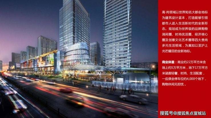 项目集逾14万方高端住宅、约22万方旗舰商场、2幢精品酒店及4幢办公写字楼于一体,建成地标性的高尚消费圈。同时设有名店区及多个表演场地,构建购物消闲圈、时尚优活圈、经济核心圈、创意文化艺术圈四大尊尚领域。