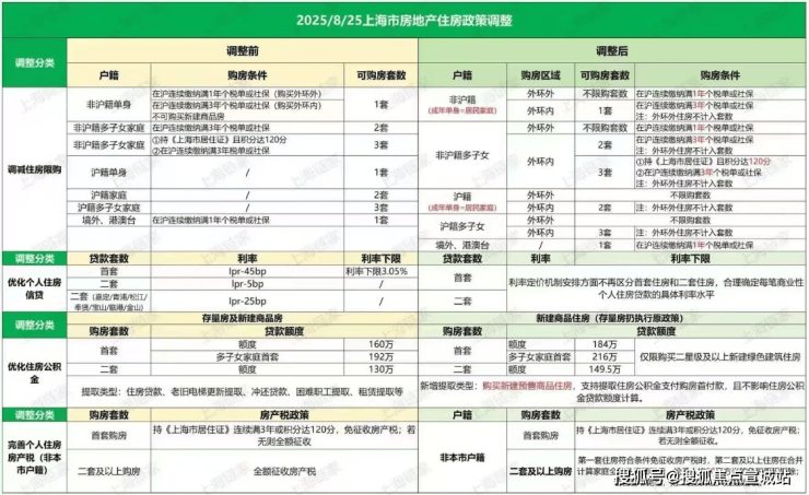 ▫️沪籍家庭/单身:外环外不限套数▫️非沪籍满1年社保:外环外不限套数▫️外环内限购2套(沪籍)/1套(非沪籍满3年)❷公积金贷款额度大幅提升!▫️首套最高160万→184万▫️多子女家庭首套192万→216万▫️二套最高130万→149.5万(购买绿色建筑住房可享上浮)❸商贷利率不再区分首套二套!银行自主定价购房利息负担进一步减轻❹房产税优惠升级!▫️非沪籍首套暂免征收▫️二套及以上享人均60㎡免税面积