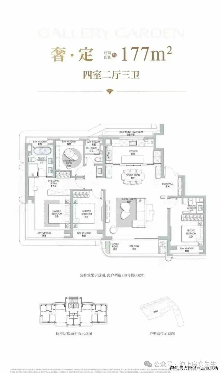 177㎡艺术贵雅奢邸是海上·清和玺压轴力作,延续玺系经典的设计理念和思路,阔朗的四面大开间设计,客厅做到了大横厅设计,延续了曲面流体的阳台,并赠送了独具特色的阳台迷你花园。