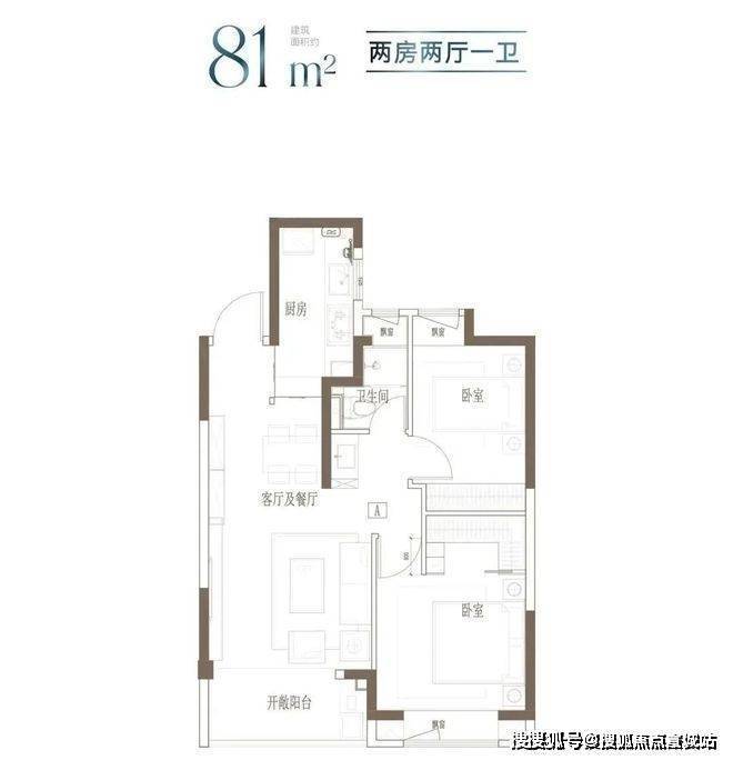 建面约81㎡2房2厅1卫▼