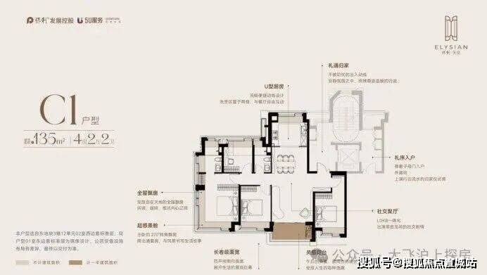 建面约135m²4放回行,室内格局是经典的飞机户型+南北通透LDKB一体化设计。是对于纯改善需求的量身定制,做了更尊奢的开间尺度。