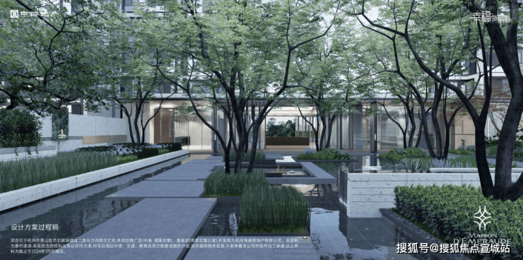 过程版效果图仅供参考 不代表交付标准为了实现尊贵雅致的归家仪式感,打造“五境归家”动线,约37米延展面的府院式大门、约4米挑檐星空顶及尊贵酒店式落客和parda绿奢石,勾勒出每一步皆静奢的归家质感。而在入户电梯厅,经典纹样的瓷砖拼花,搭配雪山银狐岩板和精美壁灯,让业主的每次回家都被温馨氛围包裹。
