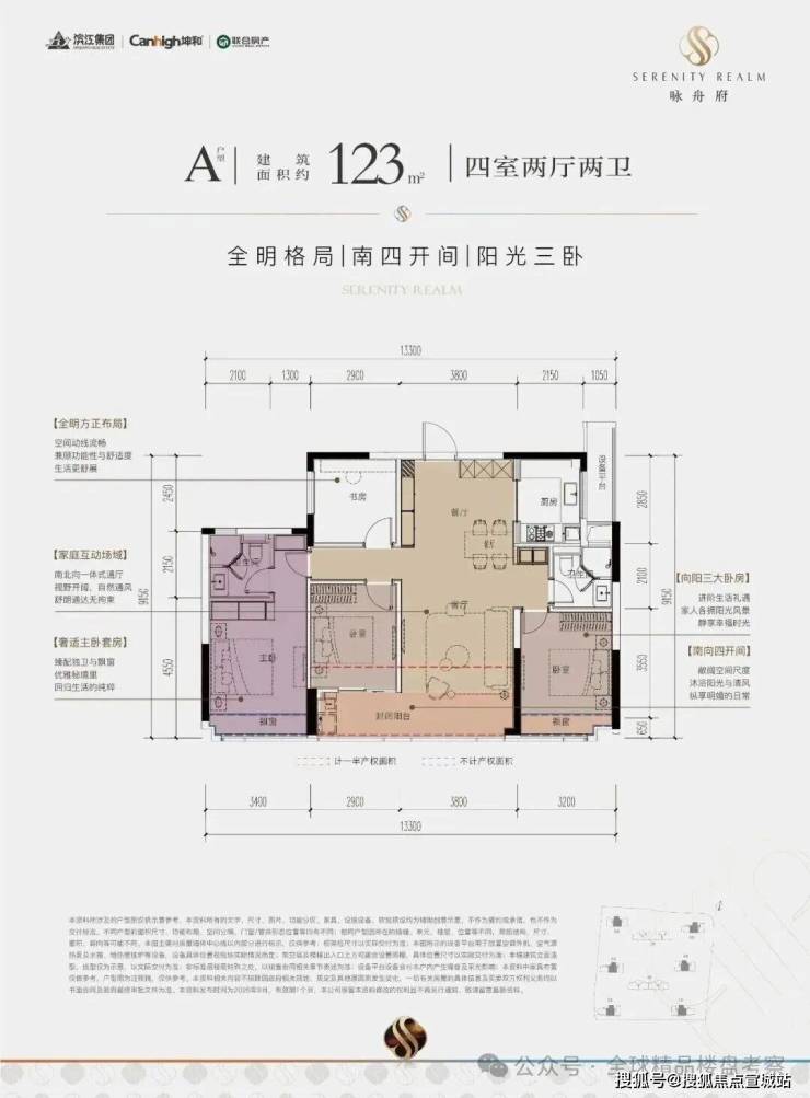 核心标签:南向四开间+阳光双套房+270°弧形飘窗