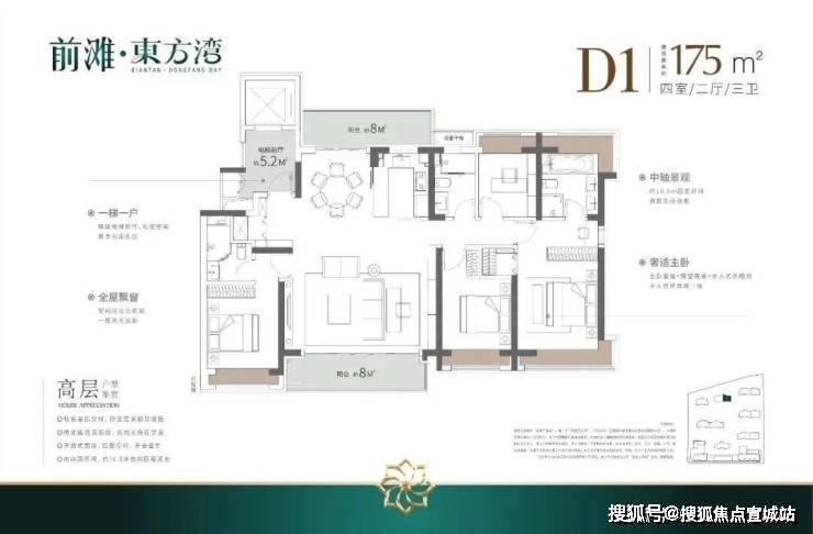 如果有进阶改善置业需求的客户,可以选择建面约140/175㎡4房2厅3卫!