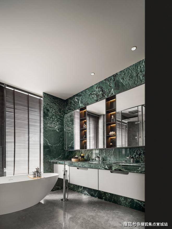 建发缦云售楼处电话:400-8862-334沿着木纹而生的大理石干泡台蜿蜒出灵动的曲线,流觞曲水的风雅被迎进室内。银壶盛满至洁的秉性,独立的衣帽间、化妆台,卸下铅尘繁杂,转头可见圆融如“不系舟”的浴缸,百叶窗保护隐私又不影响欣赏美景,让温热的芬芳包裹自己,享受全身心地放松,爱自己是要终身修习的浪漫。